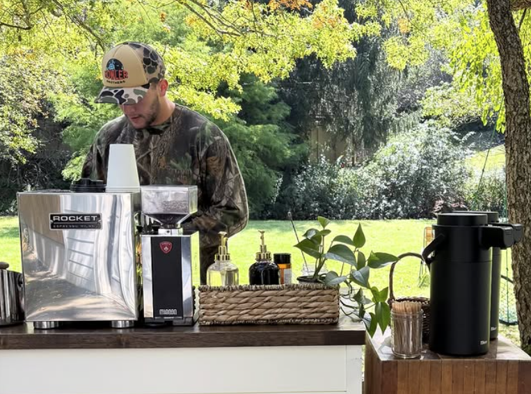 Reed learned coffee behind the counter at Stickboy Bakery from 2019 to 2022, then kept the dream on the back burner until the right moment. Christmas 2024, Mariah’s parents surprised us with a Rocket Appartamento espresso machine and Eureka grinder. A few months later, we sent a simple message to a friend who runs a wedding venue (The Mill at Rock Creek) and that little idea turned into our first wedding booking on September 13th, 2025. We built the cart with help from friends and neighbors, got it painted and plumbed, and we’ve been pouring ever since.